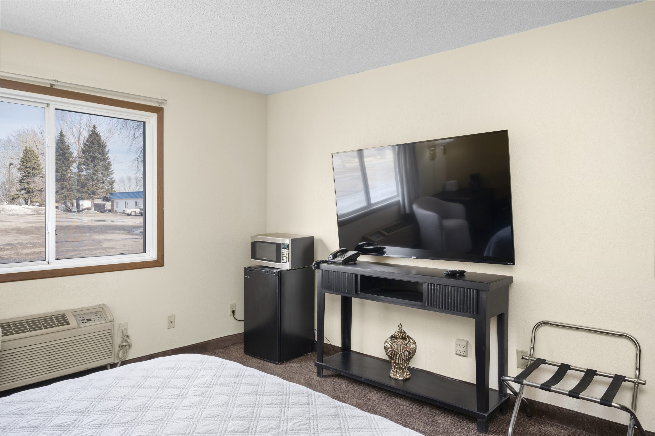 Very clean rooms and conveniently located near highway. Rooms have microwave fridge T.V. and GREAT WIFI. Showers were always nice and hot. Staff was very friendly and it is run by a very nice couple. Very quiet and affordable